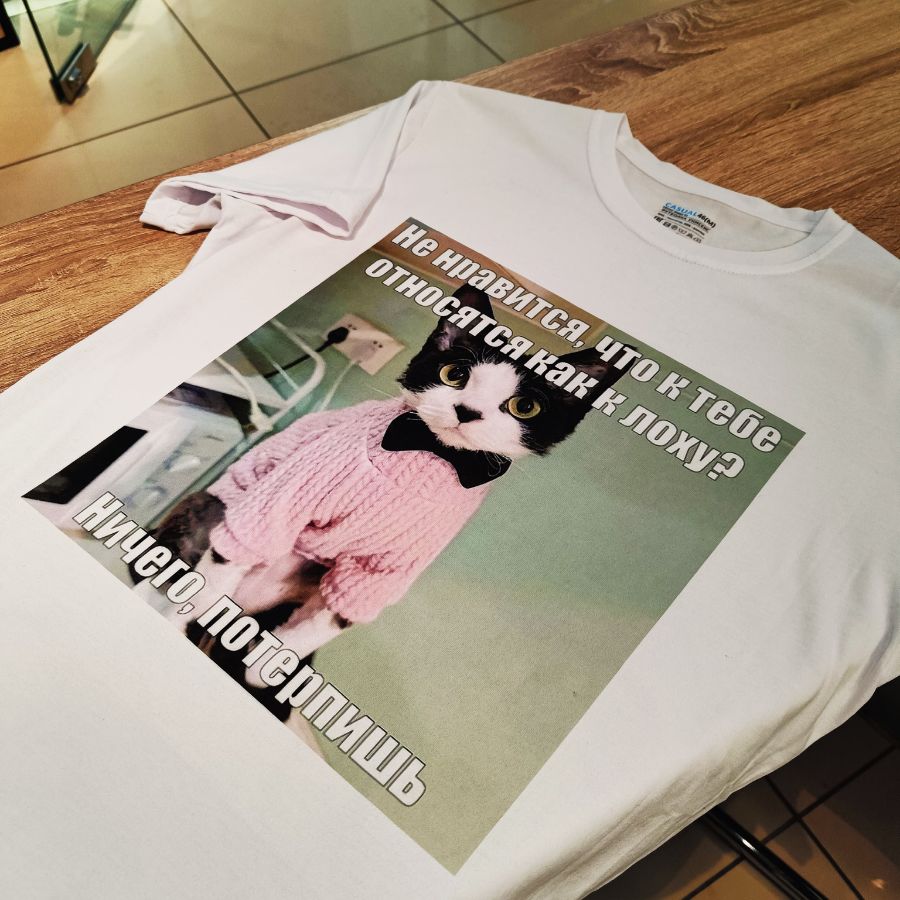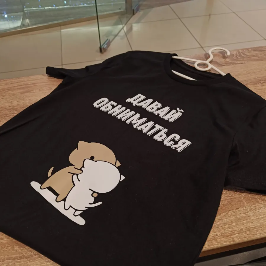 Для термотрансферной печати предоставляем футболки любого оттенка под заказ с составом 100% хлопок и плотностью 180 г/м2.